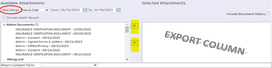 b. If only exporting certain items, pull the necessary document over to the export column by clicking that item and using the arrow to pull over to export column.